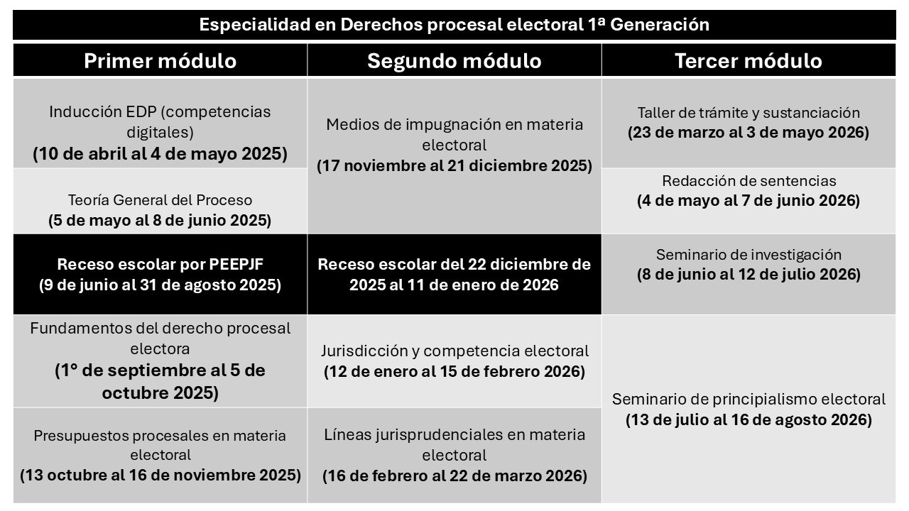 La Escuela Judicial Electoral del TEJPJF te da la Bienvenida a esta especialidad, cuyo objetivo general es establecer parámetros que permitan la aproximación hacia la verdad procesal en los juicios, garantizar la justicia en la aplicación del derecho y resolver el conflicto surgido como consecuencia del delito, para contribuir a restaurar la armonía social entre sus protagonistas.